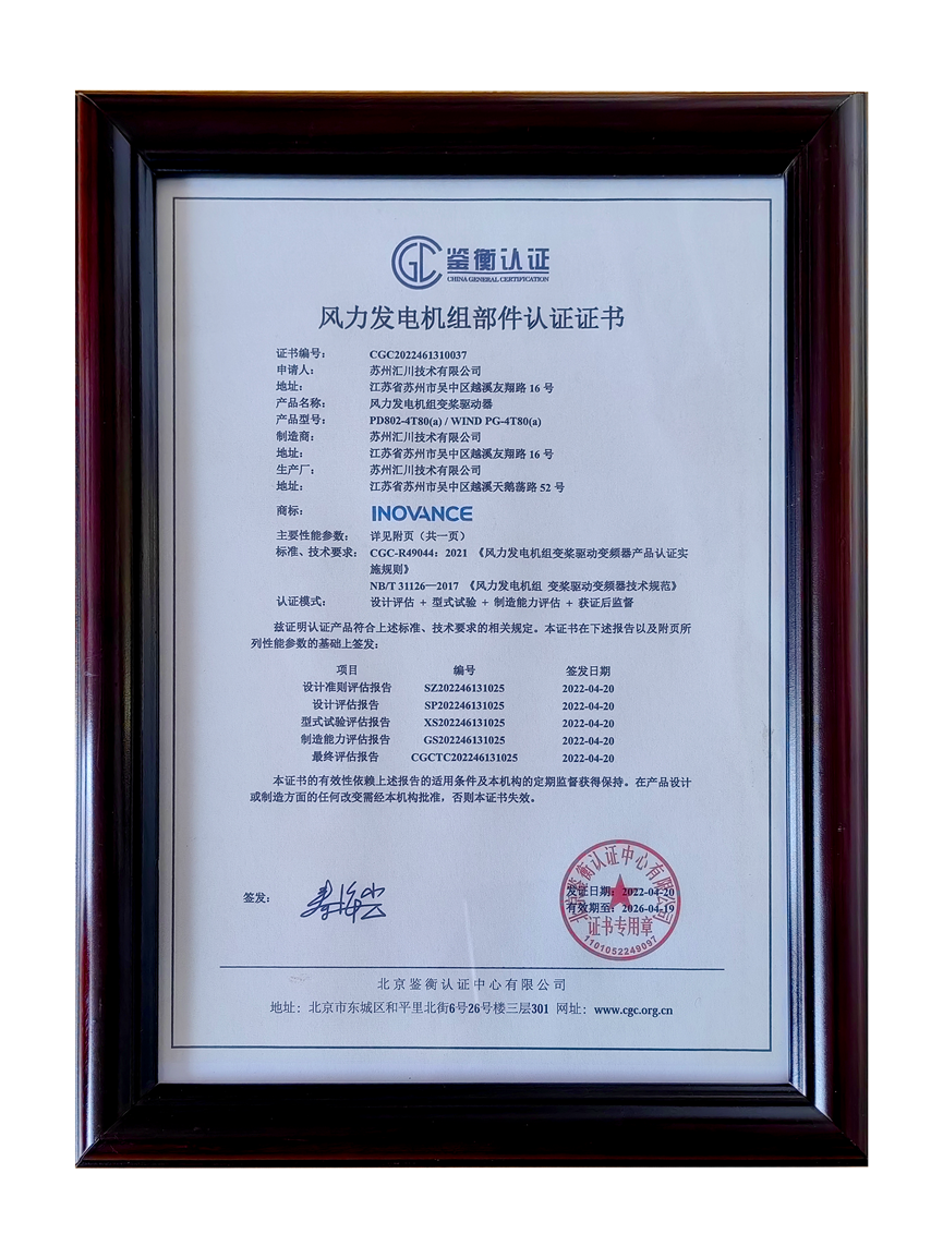12月12日,匯川技術自主研發的風電大功率變槳驅動器通過權威認證機構北京鑒衡認證中心認證,并獲得該認證中心頒發的“風力發電機組部件認證證書”,這是我國首個為風電大功率變槳驅動器頒發的鑒衡認證證書。