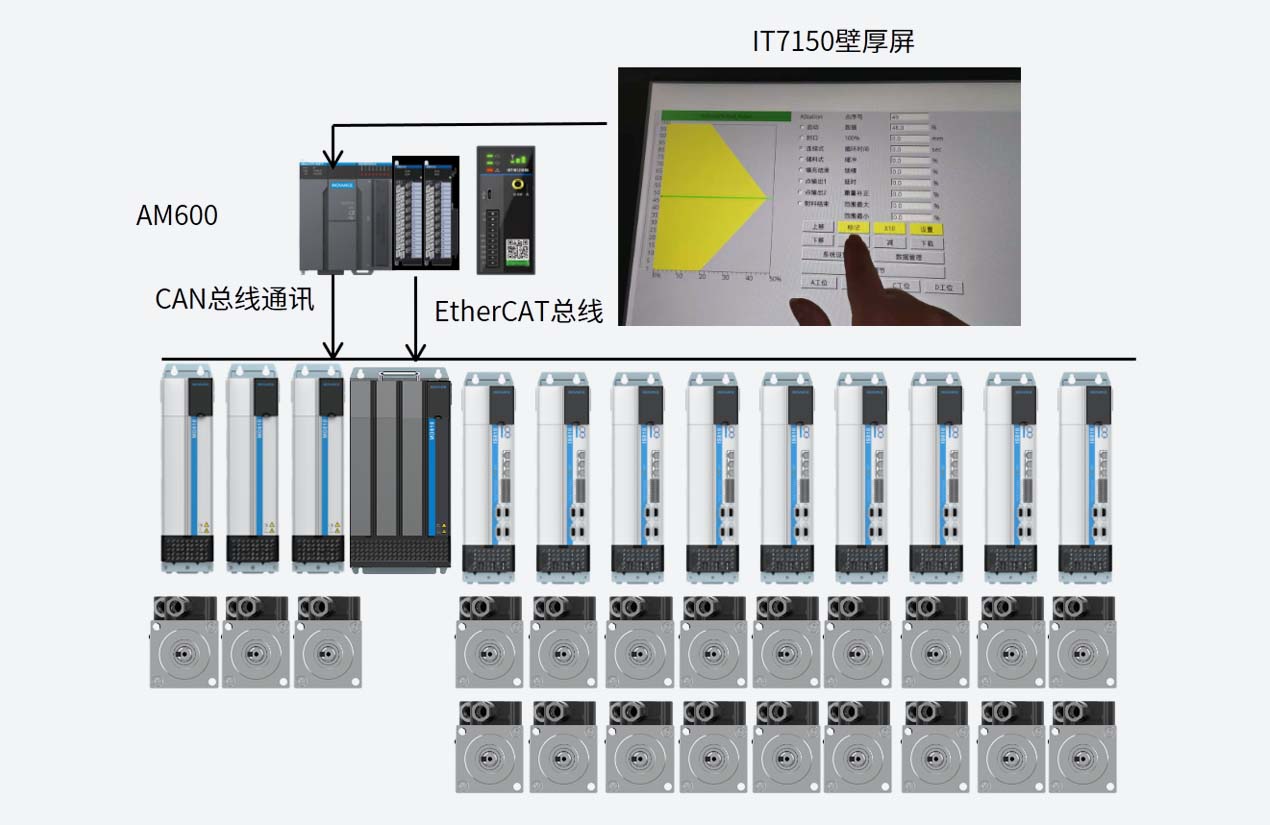 CAN通訊拉通變頻器,ETHERCAT高速總線拉通輔控制軸,全線可控,數據可提取